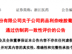 浙江医药利奈唑胺葡萄糖注射液通过仿制