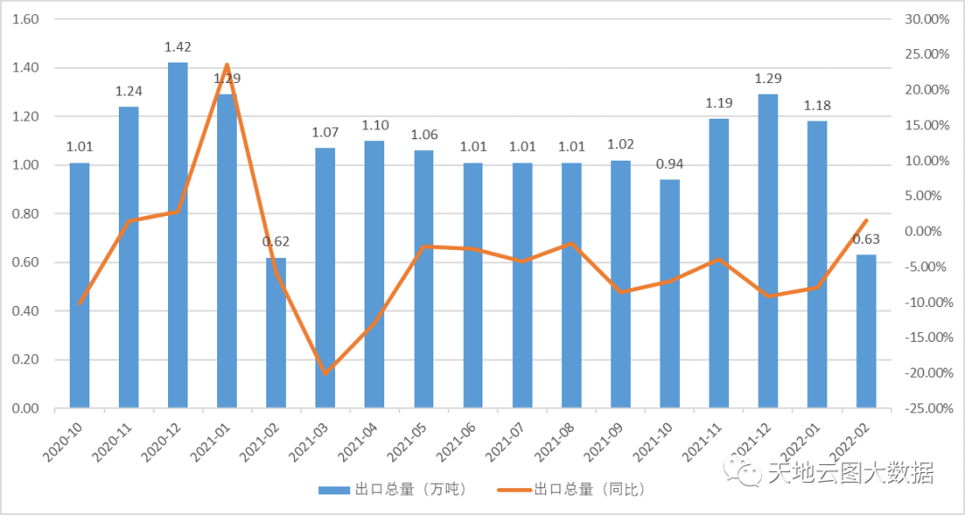 图5:2020年10月-2022年2月中药材出口总量(数据来源:中国海关)