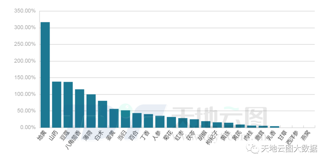 其中,因产能下降影响价格变化的品种有11个,占比45.83%,包括 地黄、山药、八角茴香、白术、当归、百合、菊花、红枣、枸杞子、黄连、黄芪;因进口受阻影响价格变化的品种有5个,占比20.83%,包括豆蔻、姜黄、丁香、胡椒、乳香;因疫情用料增加影响价格变化的品种有2个,薄荷、黄连,占比8.33%。