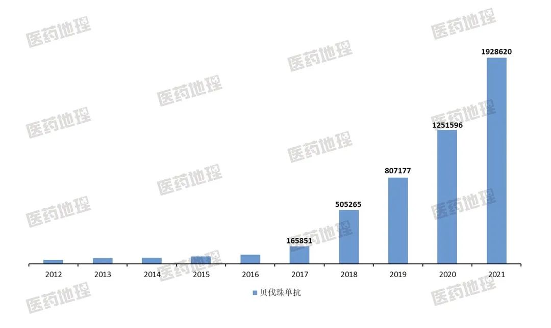 图3:贝伐珠单抗历年销售数量/支