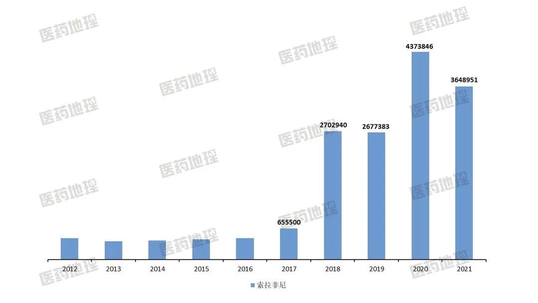 图2:索拉非尼历年销售数量/片