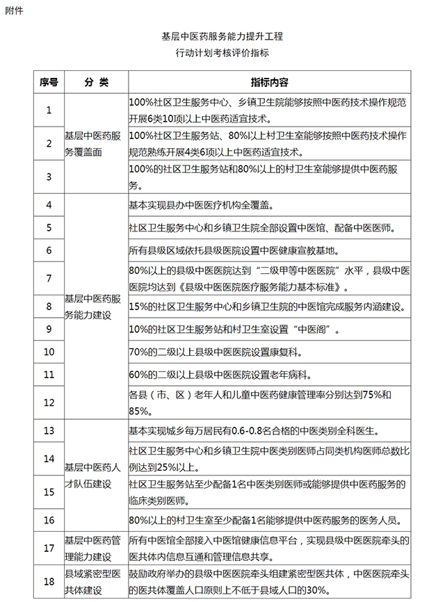 附件:基层中医药服务能力提升工程行动计划考核评价指标