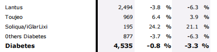 赛诺菲2021年糖尿病业务营收情况(单位:百万欧元)
