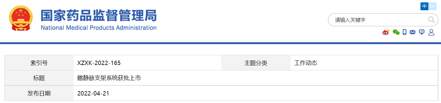 1.髂静脉支架系统(苏州天鸿盛捷医疗器械有限公司)