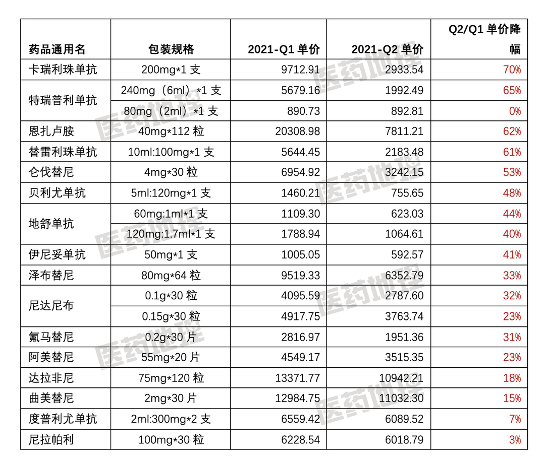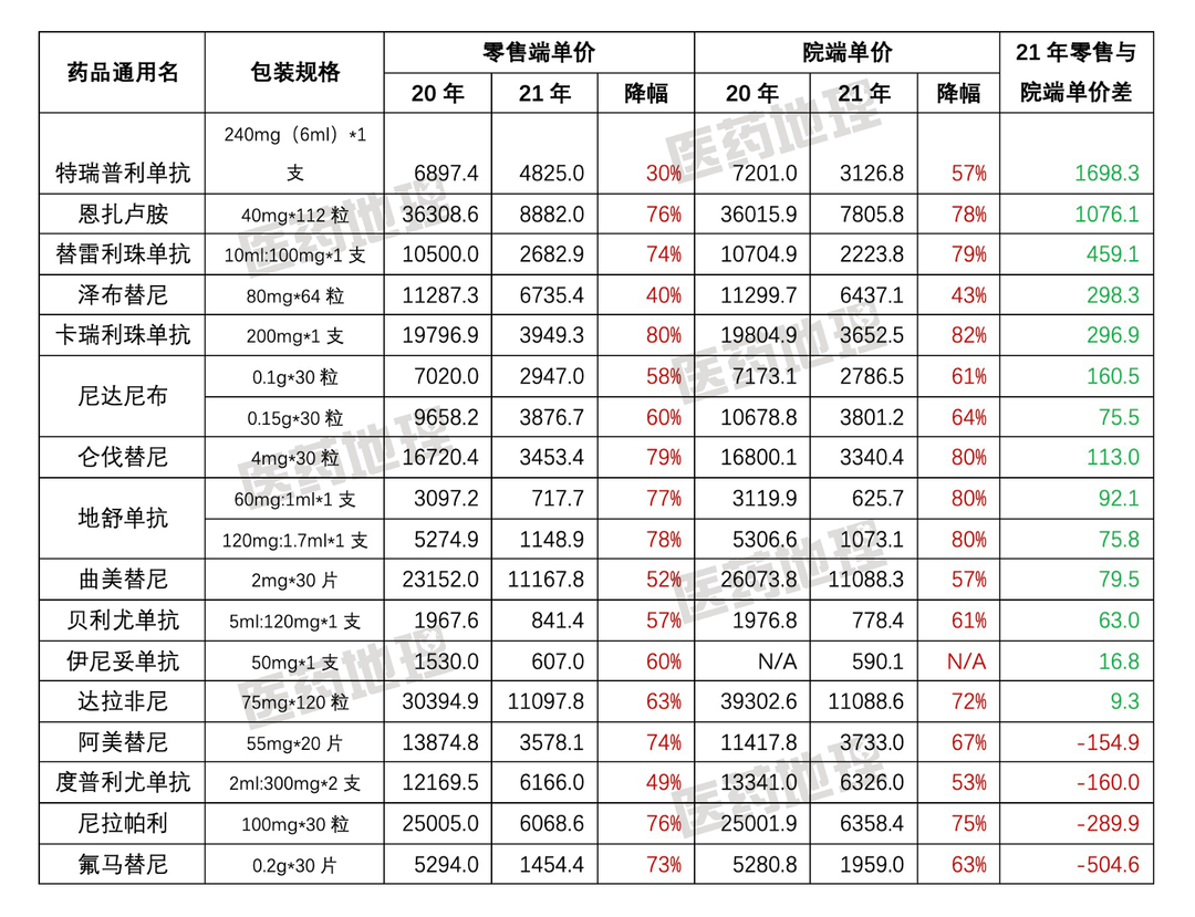 1.所有特药在零售端的价格都有下降,平均降幅约35%