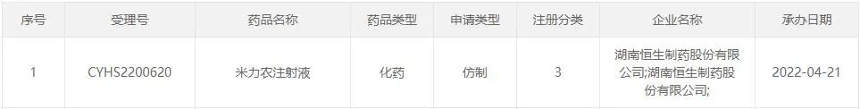 米力农注射液报产在审情况