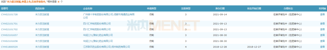 来源:米内网MED2.0中国药品审评数据库
