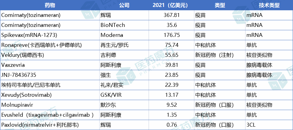 新冠疫情阻挡了PD-1/PD-L1领域的药王之路,但也成就了新一代“苗王”。Moderna和BioNTech凭借mRNA疫苗一战成名,市值最高时超过了千亿美元。“宇宙药厂”辉瑞的全球制药业务排名再次跃升为TOP1,也吸引国内企业竞相布局mRNA技术和产品。