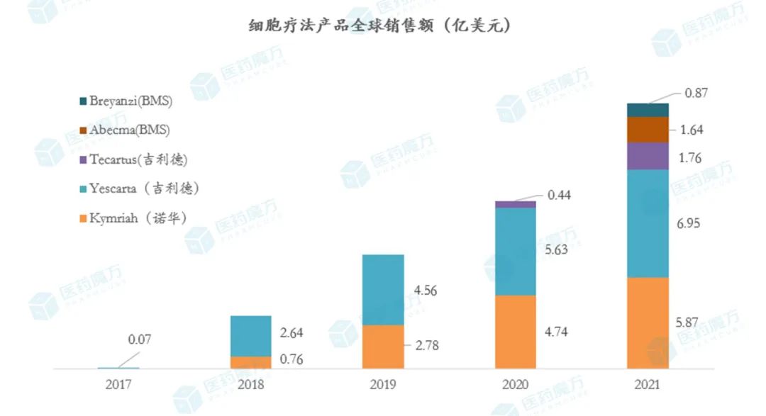 诺华的Kymriah是FDA批准的首款CAR-T细胞疗法,随着覆盖范围的扩大,在2021年销售额达到5.87亿美元,同比增长24%。去年10月,Kymriah第3项适应症上市申请获美国FDA和欧盟EMA受理,用于既往接受二线治疗后复发或难治性(r/r)滤泡性淋巴瘤(FL)成年患者。