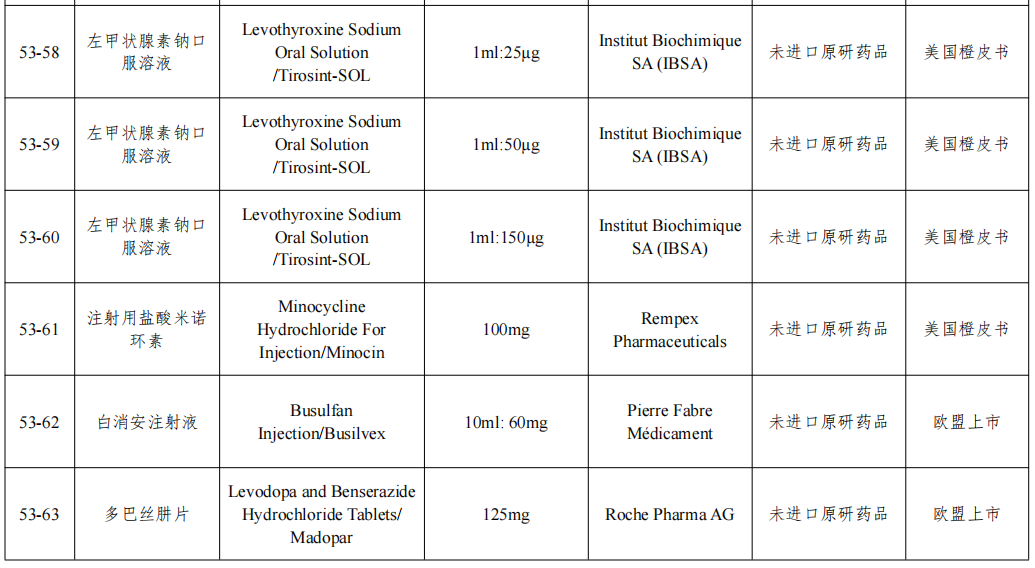 国家药监局发布第五十三批仿制药参比制剂目录