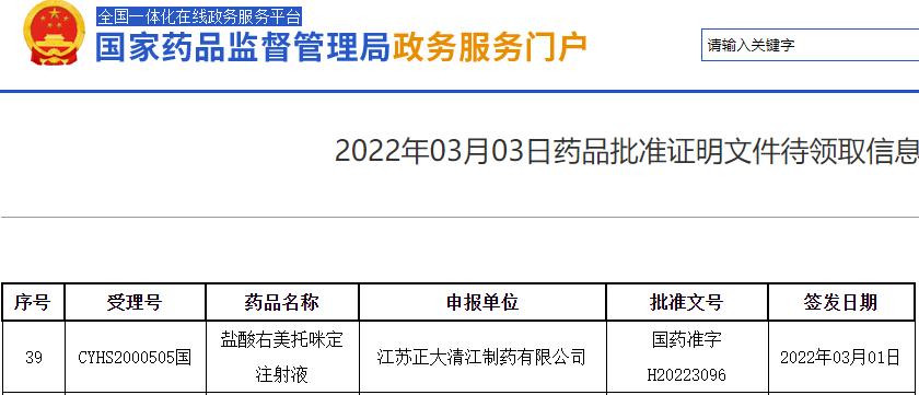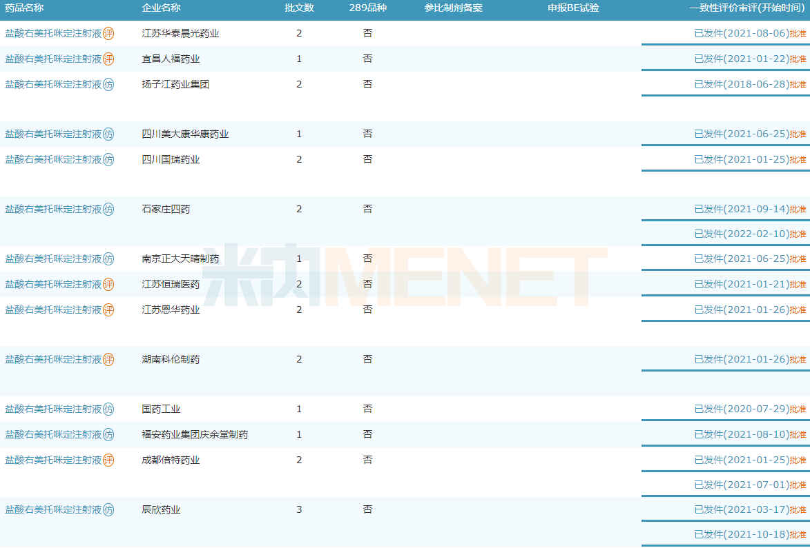 在正大清江之前,国内已有14家企业的盐酸右美托咪定注射液通过或视同通过一致性评价,包括扬子江、恒瑞、倍特、恩华、南京正大天晴等;此外,康普药业、河北仁合益康、正大丰海、民生药业等近10家企业的产品提交一致性评价补充申请或以新分类报产,目前还在审评审批中。
