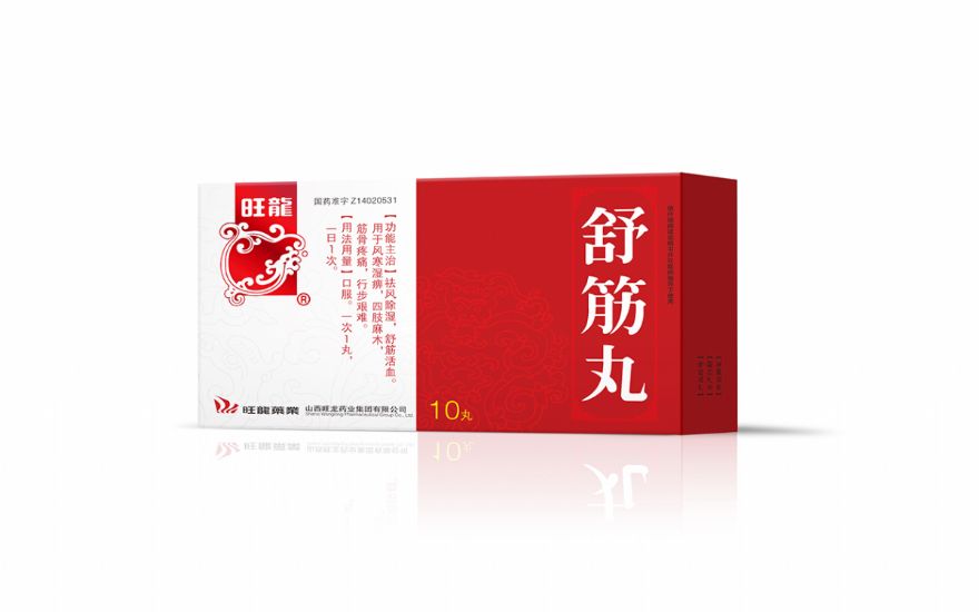 因感受风寒湿所致。症见四肢麻木,筋骨疼痛剧烈,肢体活动艰难,恶风畏寒,遇寒加重,舌黯淡苔白,脉弦紧或迟;类风湿关节炎、骨关节炎、坐骨神经痛见上述证候者。旺龙“舒筋丸”,一天一丸,祛风除湿,舒筋活血,对风寒湿阻引起的关节炎有奇效,迅速消除四肢麻木,筋骨疼痛,改善行走困难等症状