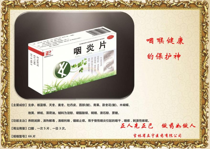 养阴润肺,清热解毒,清利咽喉,镇咳止痒。用于慢性咽炎引起咽干,咽痒,刺激性咳嗽。