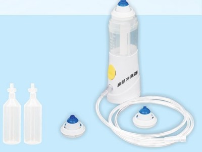 本产品由手柄、杯体、洗鼻头、冲洗开关和导气管组成。使用前装入冲洗液,与医用压缩式雾化器连接成冲洗系统,可向患者鼻腔部位进行冲洗。非无菌提供。