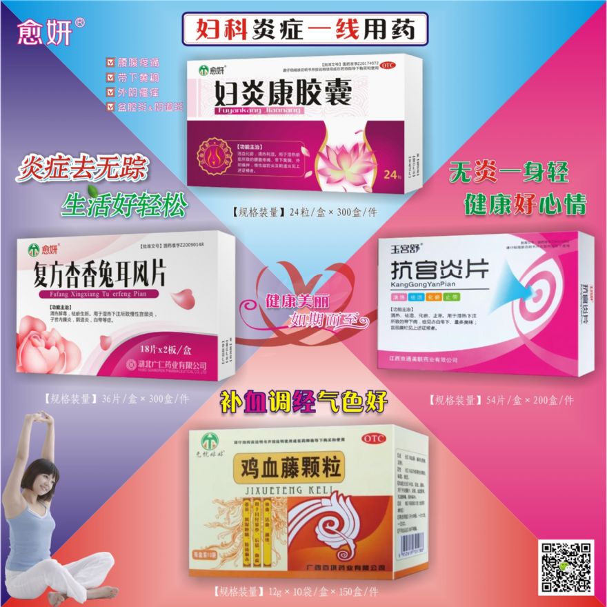 清热解毒,去瘀生新。用于湿热下注所致慢性宫颈炎,子宫内膜炎,阴道炎,白带等症。妇科系列