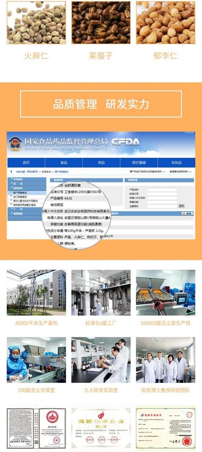 武汉名实生物医药科技有限责任公司是集研发、生产、销售为一体的大健康企业,由谈运良博士创立于2000年,位于武汉东湖新技术开发区。公司拥有11项国家专利,22年生产经验,4万平米生产基地,国际标准化工厂,九大实验室,10万级生产线。公司自成立以来,恪守"以名律己,以实惠人"的公司理念,以大众健康为己任,坚持"凝集祖国传统医学,创新现代生物技术"的技术发展思路,致力于生物技术、食品贴牌代加工的研究开发及推广事业。公司经过20多年的积累和沉淀,已经迈入了华中地区具有研发实力、发展潜力和影响力的医药公司行列。为了保证产品的质量及全国供应,2006年精心打造了全新现代化GMP达标厂房,先后通过国家保健食品GMP认证、药品GMP认证、医疗器械生产公司认证,现正在申请药品研发GLP实验室认证。2012年,投资数亿元兴建了新的生产基地,占地60余亩,将由GMP药厂、现代化办公楼、员工文化生活中心组成。名实牌产品具有独立知识产权和国家专利,荣获“高新科技企业”、“全国生物制剂行业质量领先品牌”、“全国质量检验稳定合格产品”等多个荣誉称号。公司产品全国招商,提供OEM/ODM贴牌代加工,一站式服务 免费打样,代加工范围:胶囊/片剂/固体饮料/膏滋/口服液...,欢迎业界朋友前来参观合作、再创辉煌!