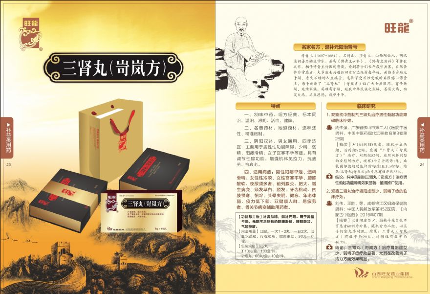产品优势一、39味中药、组方经典、标本同治,温阳、滋阴、活血、健脾。二、名贵药材、地道药材、逐味逐性、精准炮制。三、阴阳双补、男女通用、四季适宜,主要用于男性性功能障碍,少精、弱精、阳痿滑精;女子宫寒不孕等症。具有调节性腺功能,增强机体免疫力,抗疲劳,抗衰老。四、适用病症:男性阳痿早泄、遗精滑精、女性性冷淡、女性宫寒不孕、腰腹酸软、夜尿频多者、前列腺炎、肥大、增生病变、须发早白、脱发、牙齿松动、四胶畏寒、怕冷、头晕失眠、健忘、年老体弱、疫力低下者、亚健康人群、易疲劳者、骨关节病变辅助用药者。